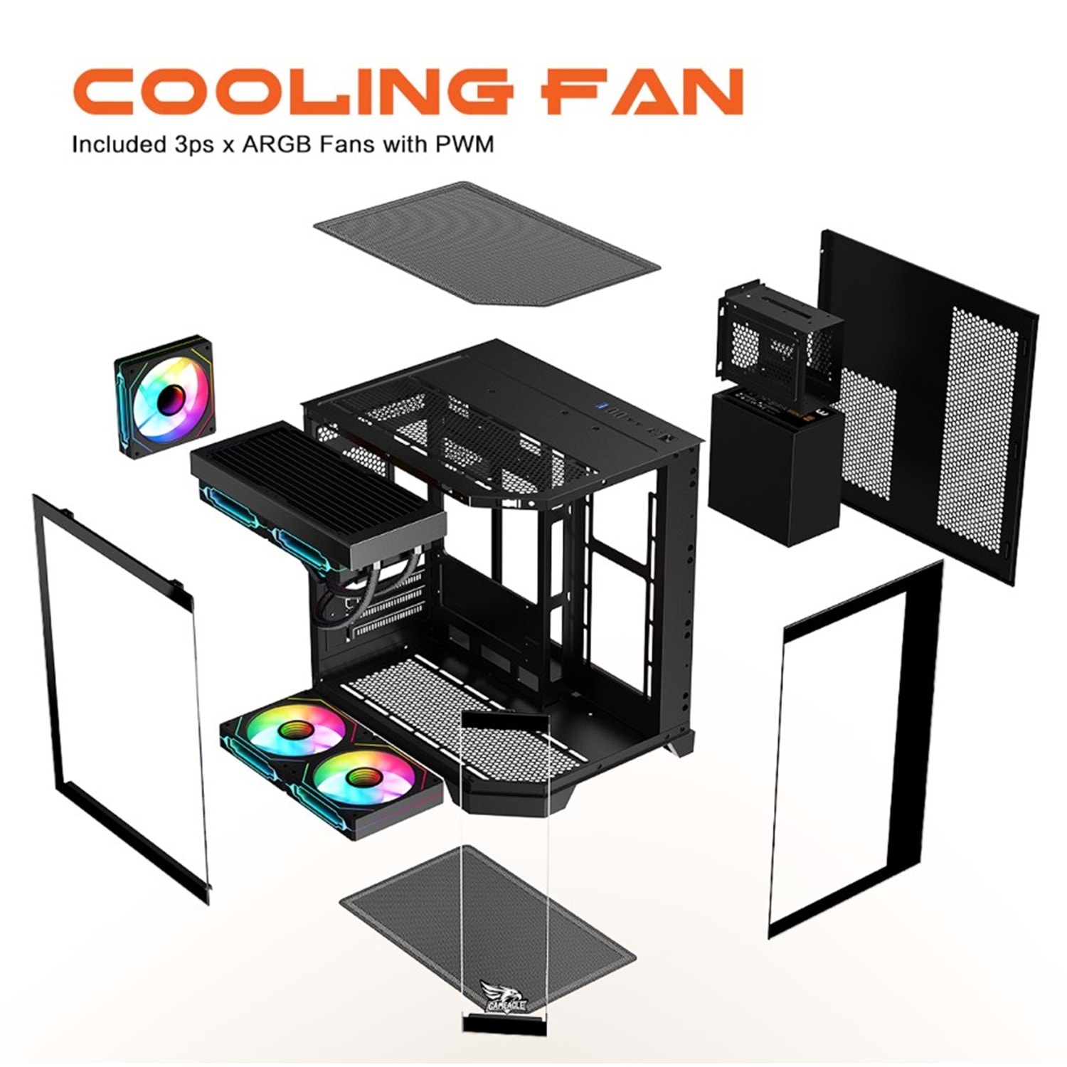 GAMEAGLE EDGE SİYAH COMPACT +80 BRONZE 750W POWER + 240MM SIVI SOĞUTMA + 3 ADET ARGB KUMANDALI AKVARYUM KASA SİYAH