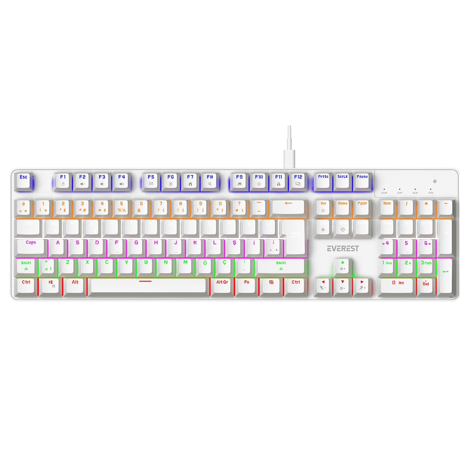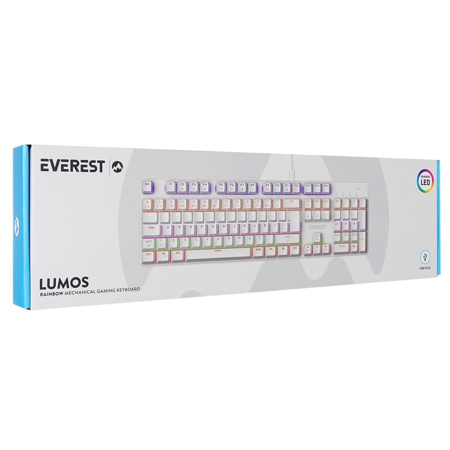 Everest KB-MK1 Lumos Beyaz USB Rainbow Aydınlatmalı Red Switch Full Anti-Ghosting Mekanik Gaming Oyuncu Klavye