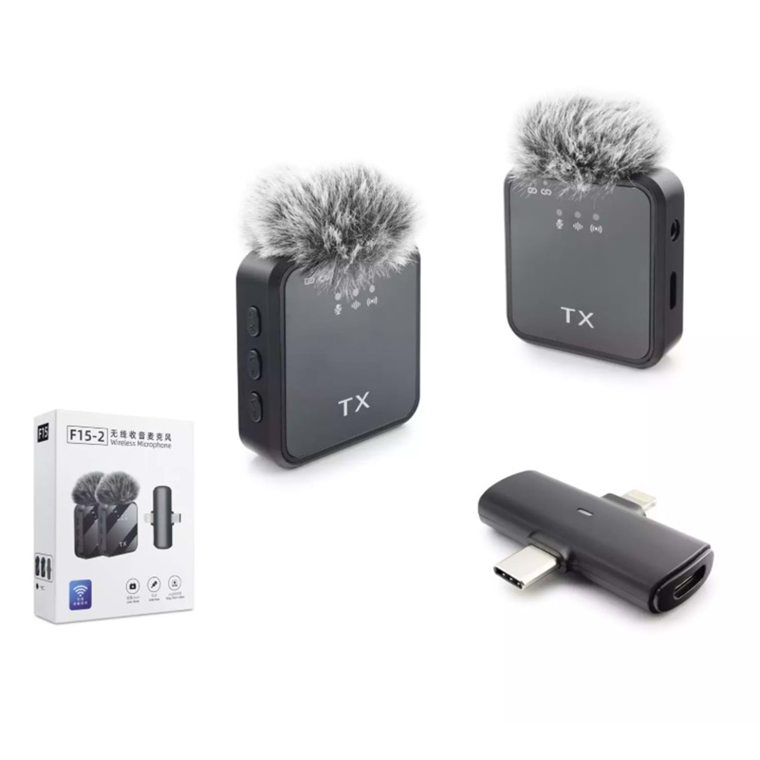 Hadron F15-2 Kablosuz 2*Mikrofon 2in1 Type-C + Lightning Kablosuz Yaka Mikrofonu
