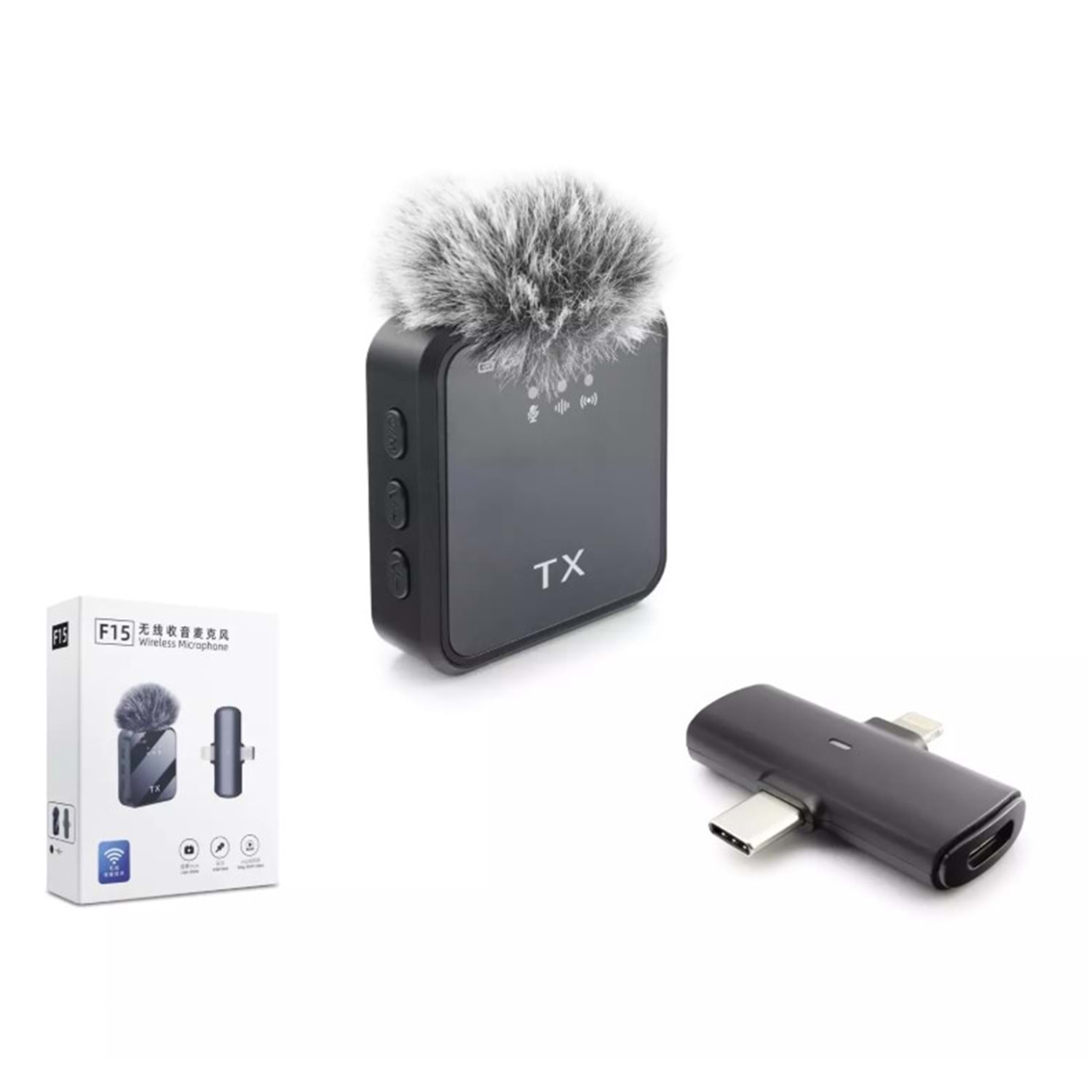 Hadron F15 Kablosuz Mikrofon 2in1 Type-C + Lightning Kablosuz Yaka Mikrofonu