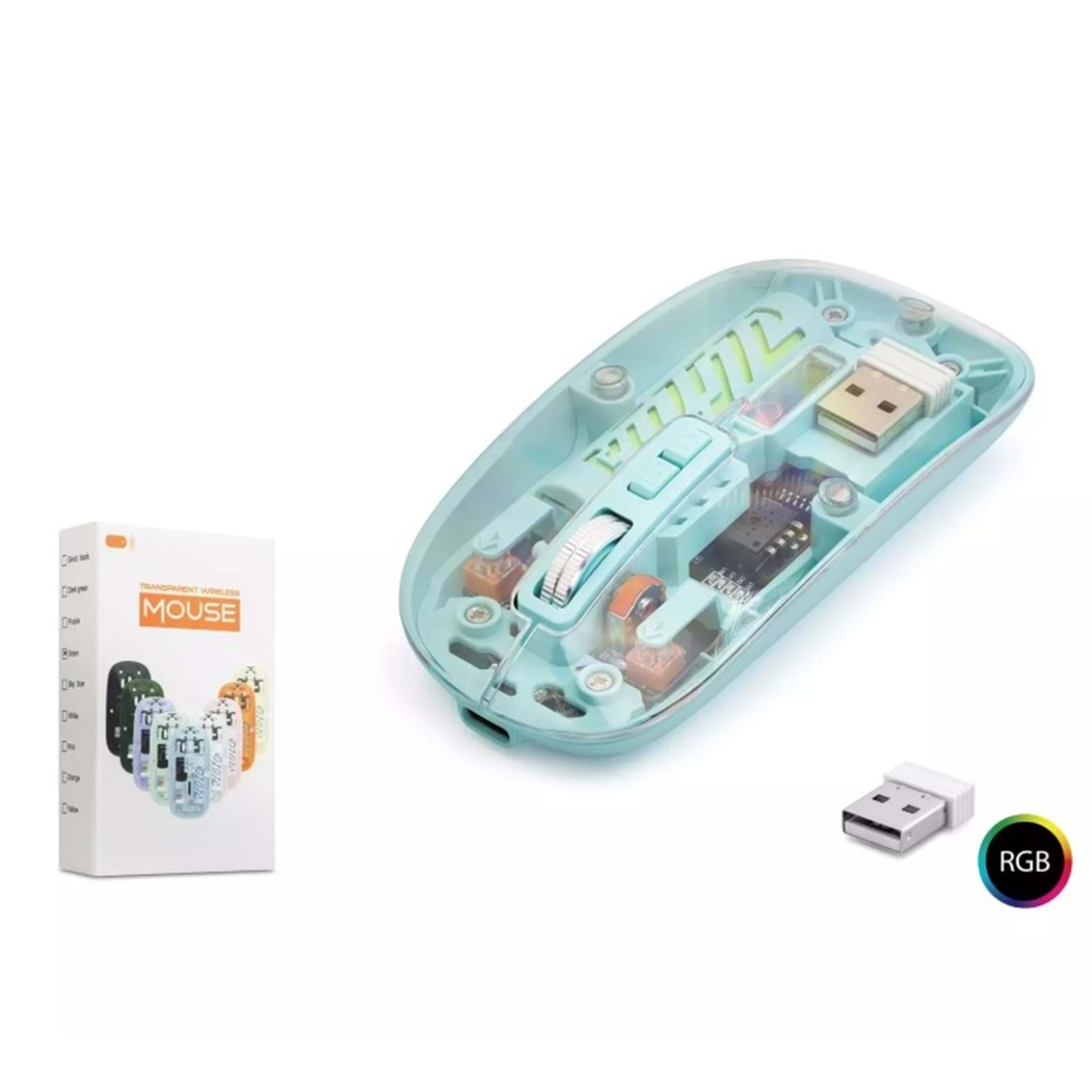Nodar ND1201b Wireless Şeffaf Rgb Işıklı Şarjlı Bluetooth Mouse