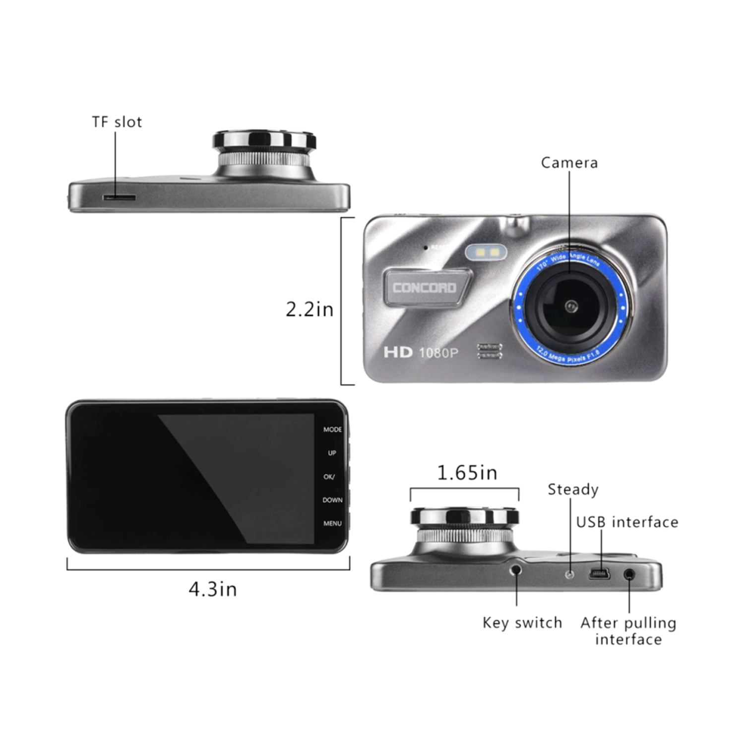 Full HD çekim özelliği ile ön plana çıkan Concord C-659 araç içi kamera yardımıyla 1080p çözünürlük elde edip net karelerden oluşan videolara sahip olabilirsiniz.