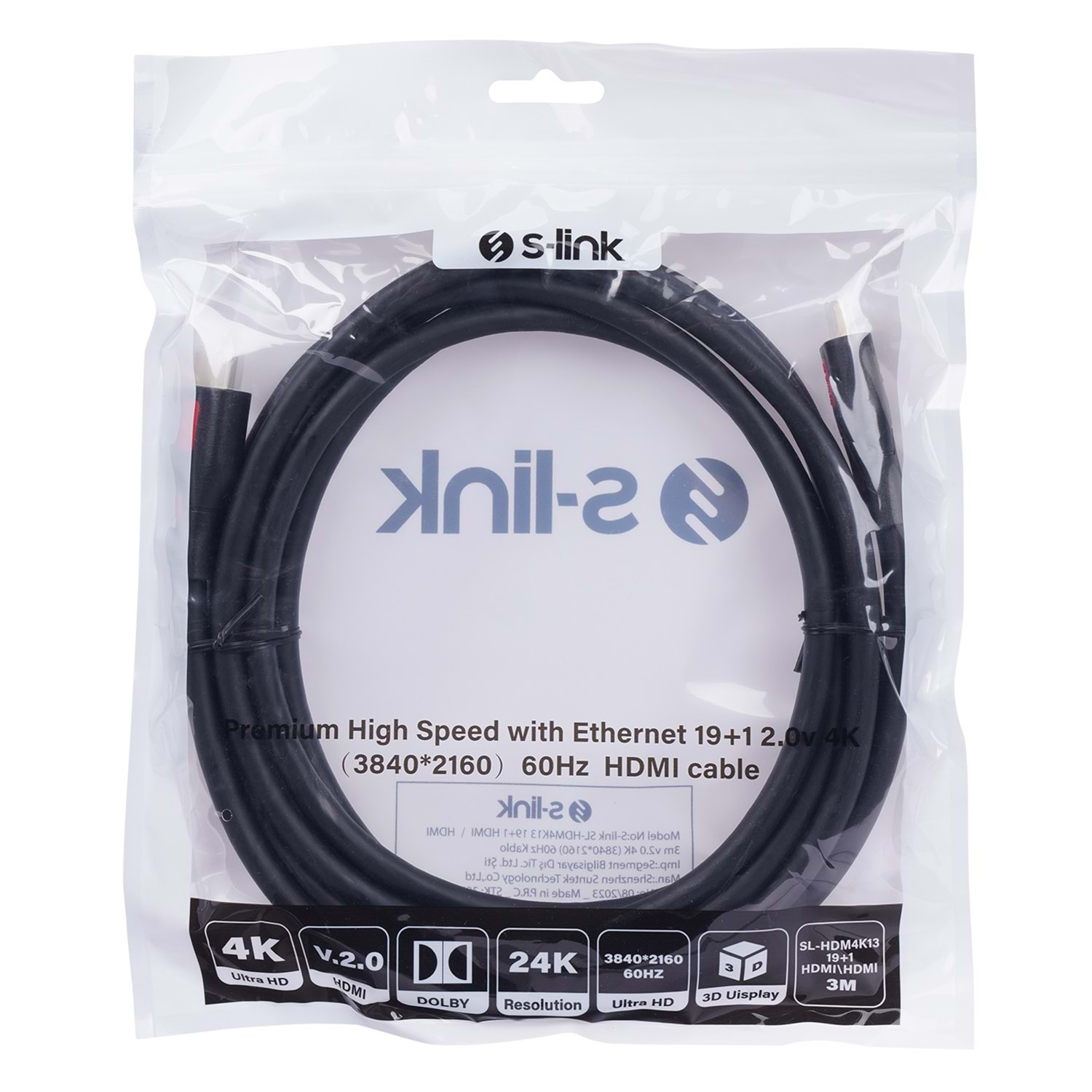 S-link SL-HDM4K13 19+1 HDMI to HDMI 3m v2.0 4K (3840*2160) 60Hz Kablo