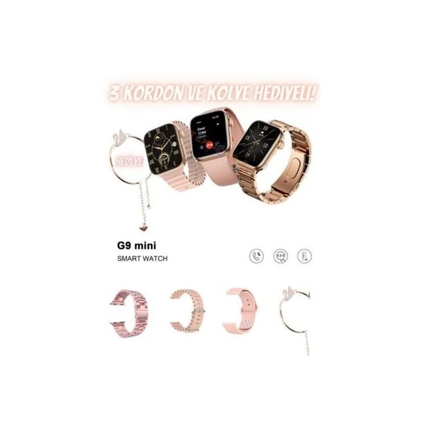 Telsan Mini G9 3 Kordonlu 41MM Bileklik Hediyeli Bayan Akıllı Saat