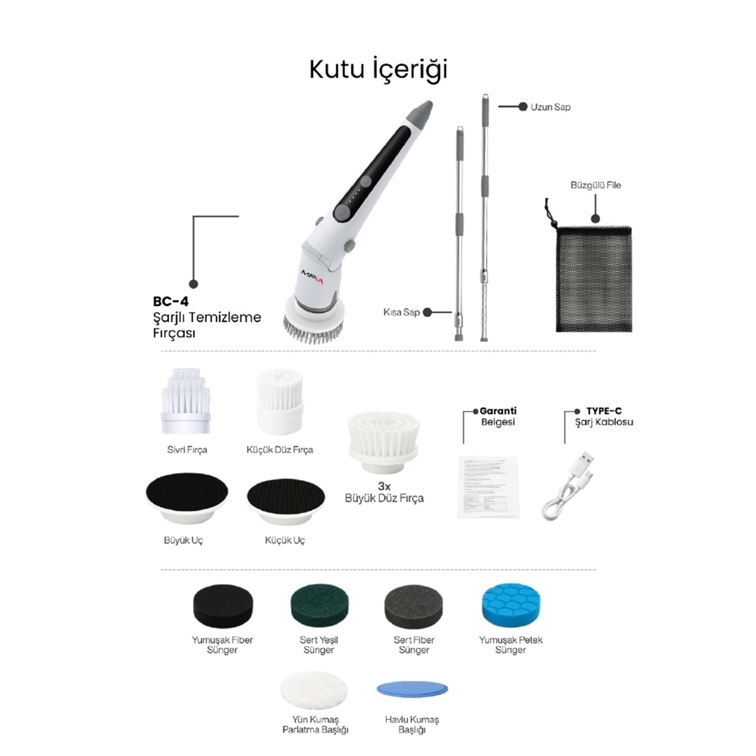 Şarjlı Temizlik Fırçası – Her Şey Dahil 17 Parça Set
